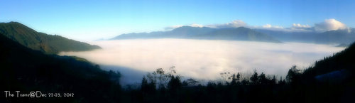 12/22,大家上班,我們幸運不用全日出勤,周六中午12點下班,馬上飛奔前往新竹五峰鳥嘴山,為了許久未相遇的雲海~車行至50.5K往白蘭部落一路爬升時,驚呼連連,心臟都快跳出來了,太.....幸運了吧。穿出迷霧森林,雲海近在咫尺,老闆娘說偶們來的正是時候~雲海從周六中午就一直陪偶們入眠。但半夜風狂雨驟,整個大變天,讓人窩在帳棚裡不想起床看天的臉色,下午天終於開了一下下,又讓偶們多欣賞他的鬼斧神工之作。周日傍晚帶著滿滿的喜樂下山嘍。