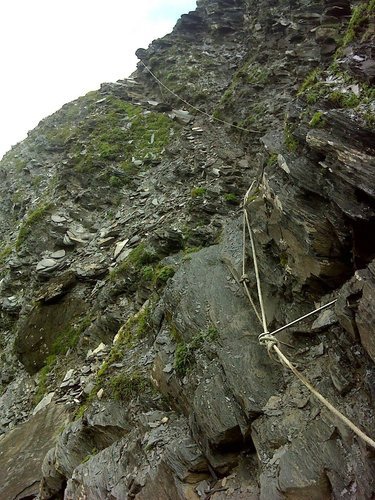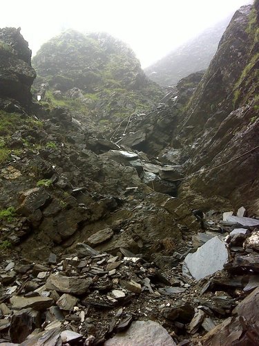7/24,昨晚一夜都是霧氣濃厚,應該是有下雨吧,一直滴滴答答的,早晨看台中方向天氣漸漸放晴,想想衝吧,上稜線山屋睡一晚,或許老天爺會賞個好天氣吧!背起沉重的裝備,上乾溪溝,先右切,再左切出森林,看到河床盡頭的瀑布時,準備右上,這時就是無窮的上坡開始,先經過成功堡,再經過叉路口,沿路的崩壁、碎石坡…,背重裝上去可是辛苦呢,照片呢?原來先前老天爺開了個玩笑,愈往上走,天候變化愈大,一路濕滑路徑相隨,危險程度也蠻高的呢!哪有時間照相!就在快絕望之際,一隊人馬經過,告訴我們稜線山屋就在前方,我們得救了,今晚落腳處就在不遠的前方,這時老天爺也微笑了,竟有藍天出現呢!懷著綺麗的夢,我們吃完中餐要去爬主峰(約3.5KM ,來回約3小時),出發前,天氣更好,但是走到約2.7KM 處我們就折返山屋了,WHY?因為下大雨、颳強風,花蓮的水氣源源不斷送往台中方向,稜線上的感受更是強烈,回頭是岸吧!一路濕淋淋地回到山屋,幻想一下隔天一早可以去北峰,看日出。