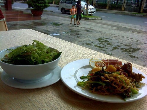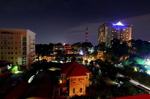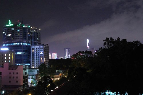 一天又是從河粉開始,每天一碗,同樣的位置,同樣的街道,不同的演員與戲碼。用餐後沒多久就被接往學校進行參訪與演講,這批學生中,有十來位將要在今年九月見面,全程的英語演說中,看到的是他們眼中的渴望,問他們未來要做什麼工作?CEO、財務長、銀行經理...好個雄心壯志。中餐去吃河粉,接著到BRODARD買麵包當晚餐,價格和台北相當呢。晚間上完課,以最快的速度,到旅館頂樓拍拍夜景,接下來就是回房SKYPE了。
