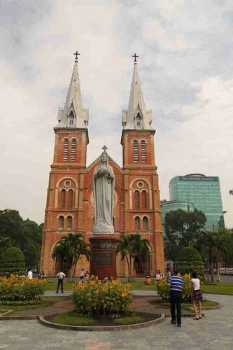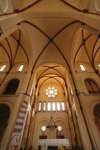 胡志明市紅教堂,前次無緣進入,這回經過的次數多了些,得以體驗教堂內的藝術之美。