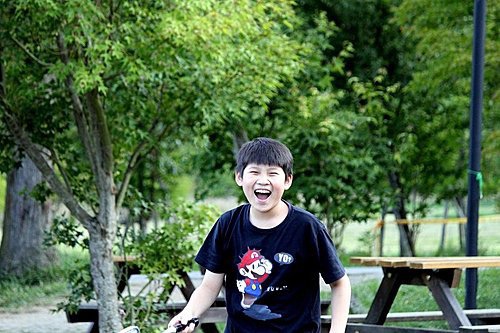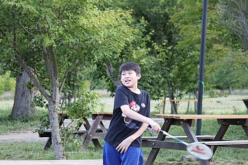 什麼事笑得那麼開心?莫非中了大獎?原來是打羽毛球啦!在開闊的武陵打羽毛球,還真是愜意呢!Gavin打得越來越上手了呢。