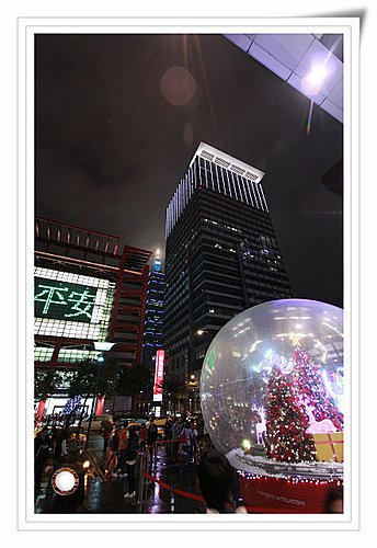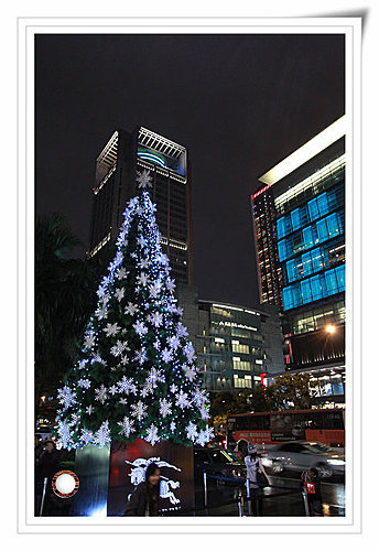 濕濕冷冷的耶誕夜,本來沒計畫出門的,但是聽說信義商圈的耶誕氣氛濃厚,就冒雨前往。人工堆飾出的燈海、璀燦奪目的耶誕樹,吸引著男男女女,親炙這耶誕盛會。夜愈來愈濃,人潮愈聚愈多,不喜歡太過擁擠人群的我們,就打道回府了!歲末時節,要祝大家以及我們自己,新年快樂,來年更幸福。
