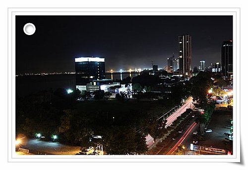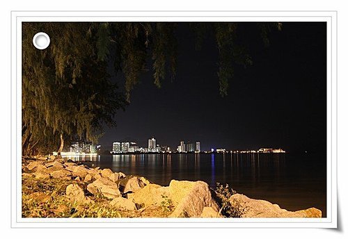 回到旅館,由九樓俯瞰,遠方的燈光應是Butterworth(北海),看不到湛藍的天與碧綠的海,不過這夜景也是迷人的,一杯咖啡,些許微風,好個熱帶風情。