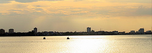越南河內市由於紅河經過,湖泊也不少,其中也有個西湖,相傳是私自下凡的兩仙女,慌張返回天庭所留下的兩面鏡子,一個在中國,另一個就在北越的河內了;又有傳說是湖畔的鎮國寺有鐘聲音宏亮,吸引一頭小金牛來此尋母,因四處踐踏而成湖。夕陽西下時,乘車經過,留下照片