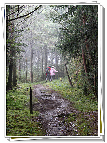 星期六一早比太陽公公早起,一路到雪隧入口無雨,心想氣象報告還真準,但是高興到雪隧出口就…下雨啦!隨著愈來愈接近翠峰湖,天氣愈見晴朗,但到目的地後就是標準的乍雨還晴的天氣,停車場還罕見的大塞車呢!在與阿富、James、 黃老師三個家庭一同集合後,我們就出發賞山毛櫸了。