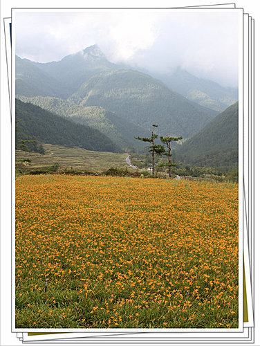 雖然沒有楓紅,但是鼠尾草、金針花和波斯菊卻開得熱鬧。進農場沒多久,映入眼簾的就是在接近遊客中心的花園裡盛開紫色的鼠尾草,接著往露營區的方向前進,一大片的金針花海,將桃山襯扥成歐洲山林的風味;結束了嗎?還沒有。經過露營區,在棧板區的後方那片鼠尾草較先前花園的數量還要大上許多,數大就是美,讓我們在進入雪山登山口前,還流連忘返了一陣子。