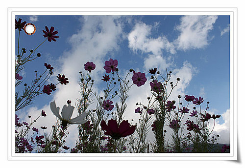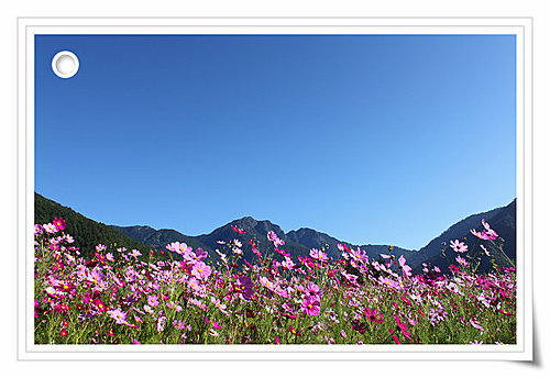 鼠尾草後頭,又是一大片的波斯菊海,貪心地想用鏡頭將大景全部裝下,卻無法如願,這就是武陵花海的魅力吧!四季中都展現出不同的迷人風貌。