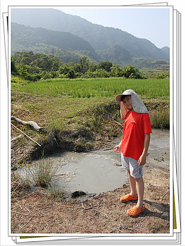接下來就前往約四公里外的羅山瀑布,先會經過泥火山以及稀有蕨類的生態區。那泥火山看來像個泥水池,有氣泡,GAVIN摸了一下覺得還冰涼的,還可以做豆腐呢!我們也不免俗的吃了一盤一百元的火山豆腐,口感介於板豆腐與百頁豆腐之間。
