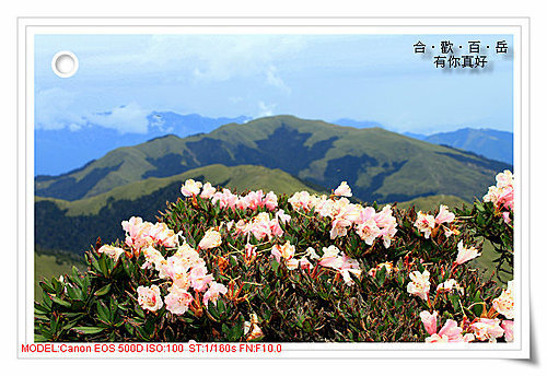 愈往上升,景觀也愈加精彩,合歡北峰、石門山與合歡尖山原來離我們那麼近,當見到玉山杜鵑的樹叢後,山頂也就近在眼前了。好可惜花都凋零的差不多了。