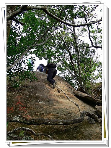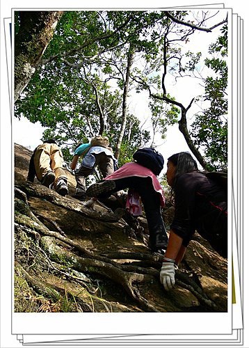 Paula的校長和同事相約爬山,清晨6:00集合,我們就在清晨微光中,驅車前往今天的目的地---三峽五寮尖爬山了。真的是「爬山」,因為沿途地形險峻,好幾個上坡處都是要手腳並用才能攀爬成功,因此也是個挑戰性很高的登山路徑,沒去不知道,去了才能體會。