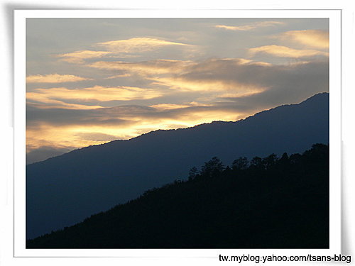 翌日清晨,照例早起等太陽公公起床,由於位於群山中,未能見到橘紅色初升的朝陽,但仍見到金色的彩霞,附近似乎沒有有趣的步道,走了約30分即返回營地,準備早餐以及Gavin的功課,中午時分擔心下雨,就拔營回家了。