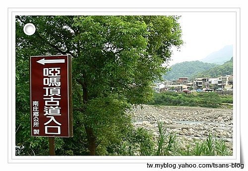 隔天一早,裝配了我們的新玩具--炊事帳,整裝完畢後即前往今天的健行步道--啞嗎頂,業主說這是條挑戰性高的步道,雖然有些路段尚未開發完畢,也有部份不易辨識,但整體而言,路標尚稱清晰,沿途也有不少蜻蜓與蝴蝶。由松濤前往南庄一路幾乎都是下坡,約40分鐘可抵達老街,當然要拜訪一下桂花巷,這個已經拜訪數次小城,一到假日,依舊車水馬龍,途中經過老舊戲院,也感受一下懷舊氣氛。回程可就都是上坡,一路氣喘吁吁,回到營地就準備打道回府了。