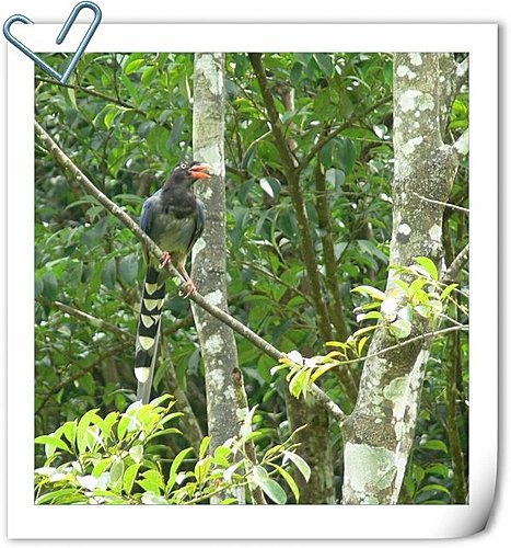 待繞營地一圈,選定營位後,我們開始搭帳,搭好之後的回報是---台灣藍鵲。大約七隻大大小小的台灣藍鵲在營位旁出現,好一個驚喜,用最快的速度留下了其中一隻負責警戒的大鳥身影。