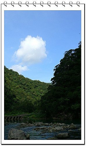 隔日早起,還是輸太陽公公,不過因位置於山谷低處,受太陽直接照射時間較晚,放眼望去,處處山嵐,薄霧遮住丘陵、山峰,好一幅水墨畫,隨後開始健行。雖說我們想走灣潭古道,但走了應該是另一條步道吧,位於坪林與雙溪的交界處,沿溪前進,直到路的盡頭,途中還看到蛇呢。折返時才發現灣潭古道,但裝備不足,只好未來有機會再來吧。