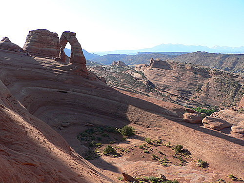南猶他州得天獨厚,隆起的科羅拉多高原,受到河流與風的侵蝕,到處有著特殊的景致。在Moab的第二天,一早就起身拜訪拱門國家公園,早些到公園除了可以避開擁擠的人潮外,宜人的氣溫才是重點。