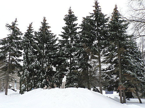 因為是姐姐的生日,所以就留下一張姐弟情深的照片;順便滑一下雪吧,停車場的雪已經積得像一座小山丘一般,平常這只是停車場的一部分(平地)。