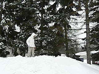 注意到了嗎?雪的深度剛好到Gavin的膝蓋,正可以體會寸步難行的感覺。