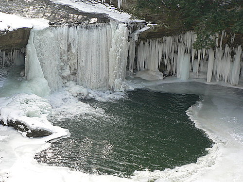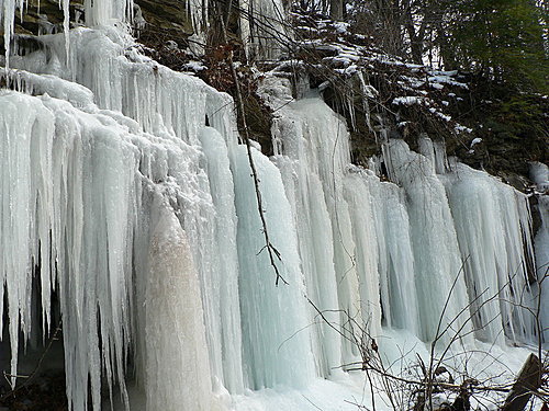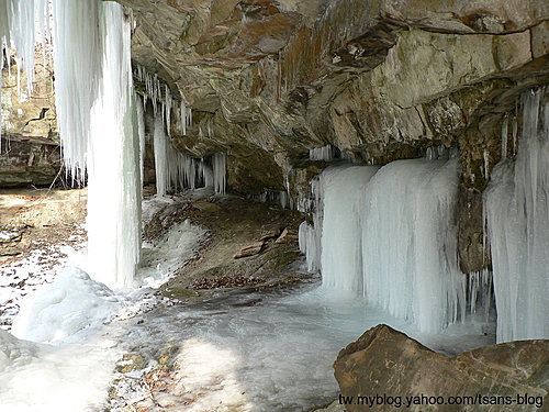 由地面滲出的水也都結成了各種顏色的冰瀑布。