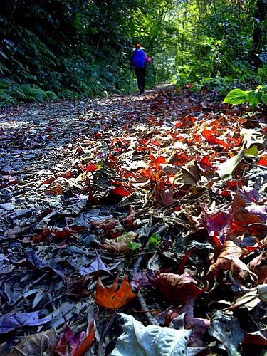 再上鋁梯,向右,鏘鏘雲森瀑布,一群人固定好攝影腳架,捕捉楓紅與瀑布的身影,這裡太美了,又豐富的負離子,聽攝影專業人士說,10AM有日光射入,是拍攝的好時機,我們只有可愛的小Garmin,雖然不起眼,但是還是要努力給他留下一些記憶,因為楓葉即可能下週就不復存在了!
