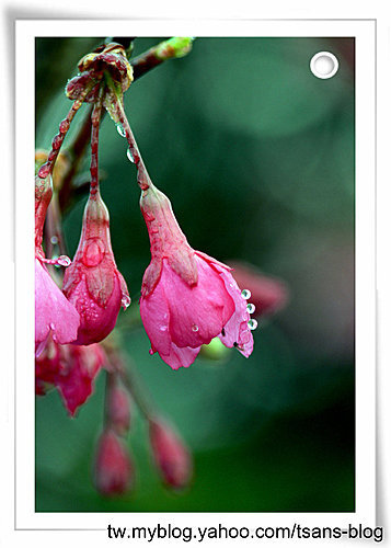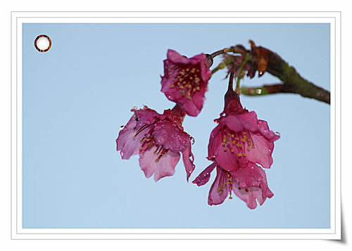 (大霧散去後,櫻花瓣上凝結著水珠)
