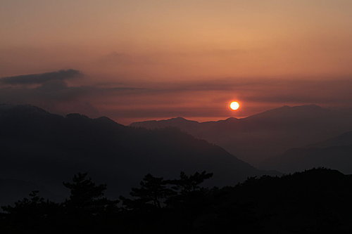 日落時分,夕陽江天際暈染成一片的紅,在福壽山農場天池,我們等待,落在那群山之後的太陽,明日早晨,又是以何種瑰麗的面目,與我們相見?