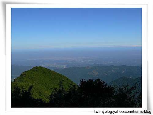 花了約半小時攻頂鳥嘴山,發現了上次忽略的景觀台,遠眺竹東苗栗方向,難得霧散了,看得好遠好遠。