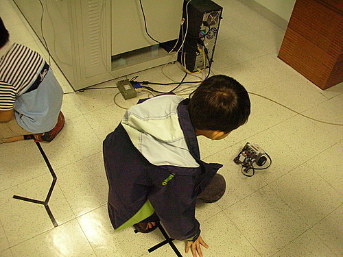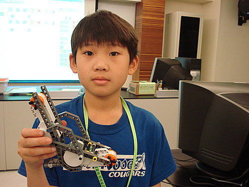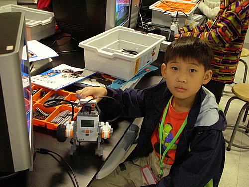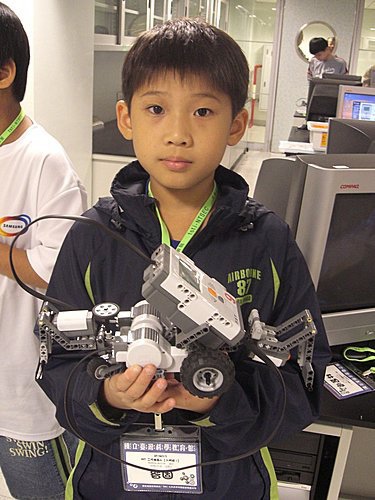 Gavin似乎對動力機械及NXT機器人的興趣濃厚, 我就利用星期日早上的時間開車帶他到科教館上課,Gavin總是專注的組裝零件,絞盡腦汁設計各種不同功能的機器人,下課也會與我分享他所設計的機器人,增加我的物理科學知識。