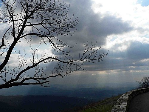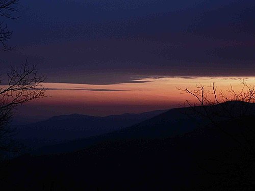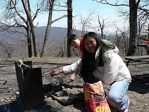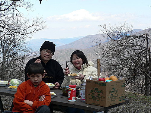 初見霞光 接近仙納度的途中,看到了萬丈霞光,想想是不是真有仙人住在那山明水秀的地方? 與春天的接觸 到了國家公園入口處,果然感覺天氣比Ohio好些,一幅春暖花開的景致。 與鄉村歌曲的近距離接觸 付了國家公園買路錢之後,一路上坡,這是著名的天際線公路(Skyline Drive),也是大家耳熟能詳,歌手John Denver所演唱的鄉村歌曲—Take me home, country roads歌詞中的Blue Ridge Mountain(藍脊山)的所在,遠望群山,似乎透著幾許的藍。 開著開著,就見到了進國家公園前所見到的霞光,如此之近,也感受到了那股靈氣。 雖然當天早晨天氣不甚理想,但是沿途景致處處令人讚嘆,居高臨下,常有驚喜。但是由於現在還是初春,樹木還沒長出新芽,但是另有一番感受;到了下午,天氣放晴,暗自慶幸我們的好運,感謝老天爺的賞臉。 露營野炊 在壹仟多公尺的營地露營是個新經驗。我們在露營區的營位正好在山崖邊,據公園管理員說是最佳的位置。新買的六人帳,感覺小了些,但也足夠我們一家四口擠一擠了。搭完營帳後,Joanne為我們烹煮拿手菜—泡麵,配著帶來的高麗菜還有罐頭,還有最重要的角色美景,享受了豐盛的第一餐。 瀑布與草原曠野 吃飽後,該運動了,到附近的瀑布還有草原散散步吧。Dark Hollow瀑布是園區中的大瀑布之一,是比較容易健行前往的一個,但是感覺比起滿月圓的小了許多。停下來享受一下負離子吧。沿途都是下坡,去程很順利,回程就辛苦啦。隨後把握這難得的晴天,再往南走,停在每個可以停車的景觀台,直到飢腸轆轆為止。回去營地準備晚餐,此時夕陽準備西沉,帶來另一次的饗宴。 夕陽、枯樹、鹿群 趁著夕陽完全沉沒前,掌握餘暉,把唯美的畫面凍結在數位相機中,把短暫的剎那,留在電子數位洪流中。鹿兒們也在此時覓食,青草伴著落日下肚,也是一種美味佳餚吧。 睡在冰箱裡的滋味: 隨著太陽西沉,冷空氣逐漸佔了上風,不升營火就無法抵擋那刺骨的寒風,當天的氣象預報是攝氏零下一度,這時真的希望那只是氣象預報員的小玩笑。遠方少數人家的燈火、滿天星斗,一家人在北極星底下,靠在火堆旁取暖,第一次有這種感覺,是長期在城市中生活未曾有的經驗。睡覺時間到了,撲滅營火後更可以感受到空氣中傳來的低溫,我們體會了第一次在如同冷凍櫃般的環境下睡覺的滋味,風颯颯的吹著、伴隨著不知名動物的腳步聲、夜行鳥類的叫聲,晚上也不會寂寞;然而聽說隔天的低溫預報是負八攝氏度,應該沒法在露營了,所以這種體驗一日即可,別再有第二次了。 日出、冰霰 嚴寒的夜裡,幾乎是每小時醒來一次,六點多被遠方傳來一陣陣啄木鳥啄樹的聲音喚醒,晨曦也不甘寂寞,催人起床。清晨,四周寂靜,適合靜坐欣賞日出短暫呈現的美景,留下幾張照片後,厚厚的雲層又還給大家灰濛濛的天空,不一會兒下起了冰霰,催促著大家離開,有一些婉惜。這樣也好,或許來日樹木發出新芽、或許以後兒女長大,還可在一次舊地重遊。 期待下一次的國家公園約會 …….